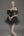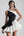 Black Satin V-Neck A Line Pleated Short Summer Dress