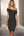 Black Satin Bodycon Round Neck Ruched Midi Work Dress