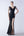 Black White Sheath V-Neck Satin Long Formal Dress with Sleeves