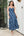 V-neck Green Printed Long Sleeves Casual Dress with Pleated