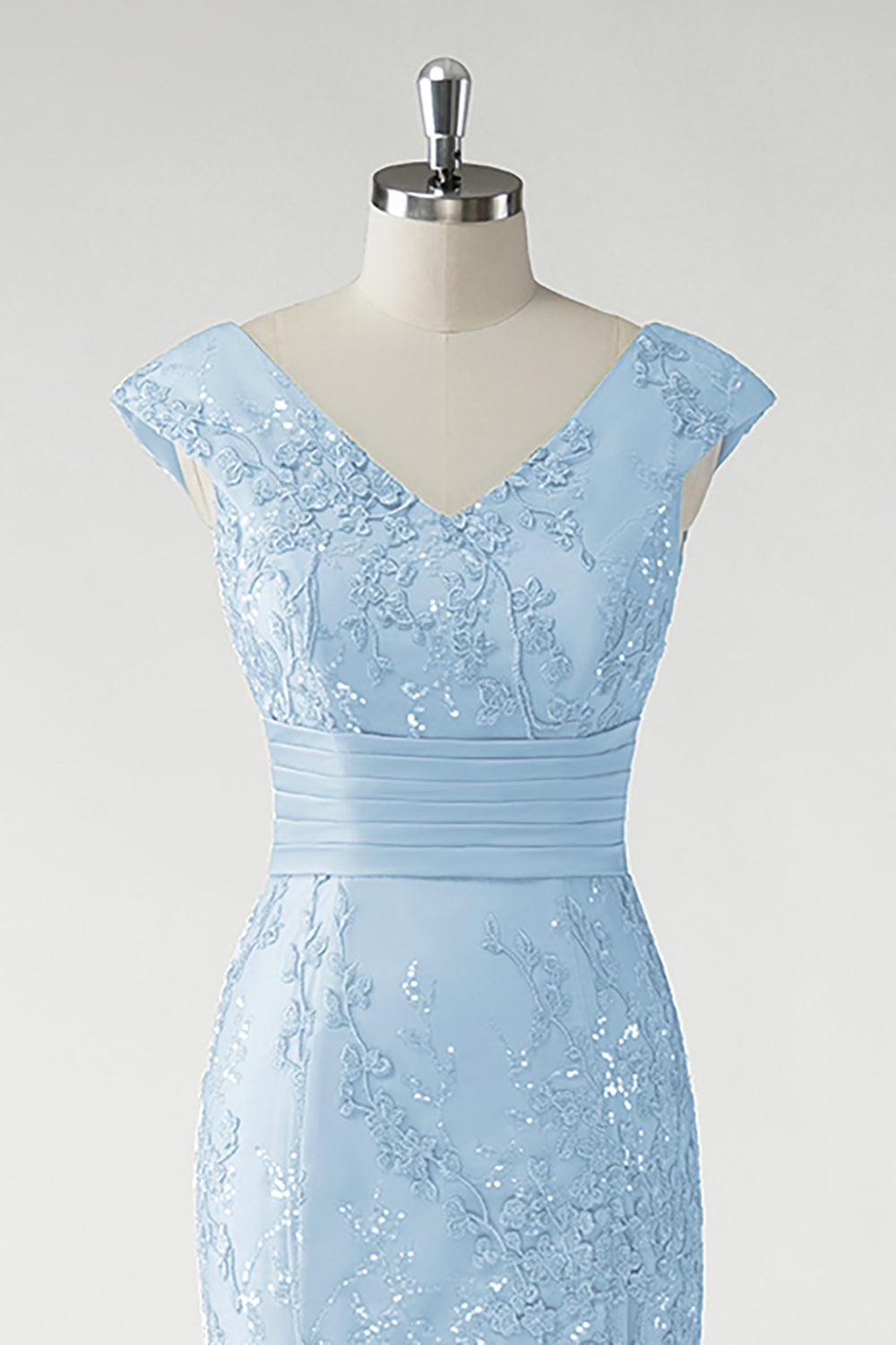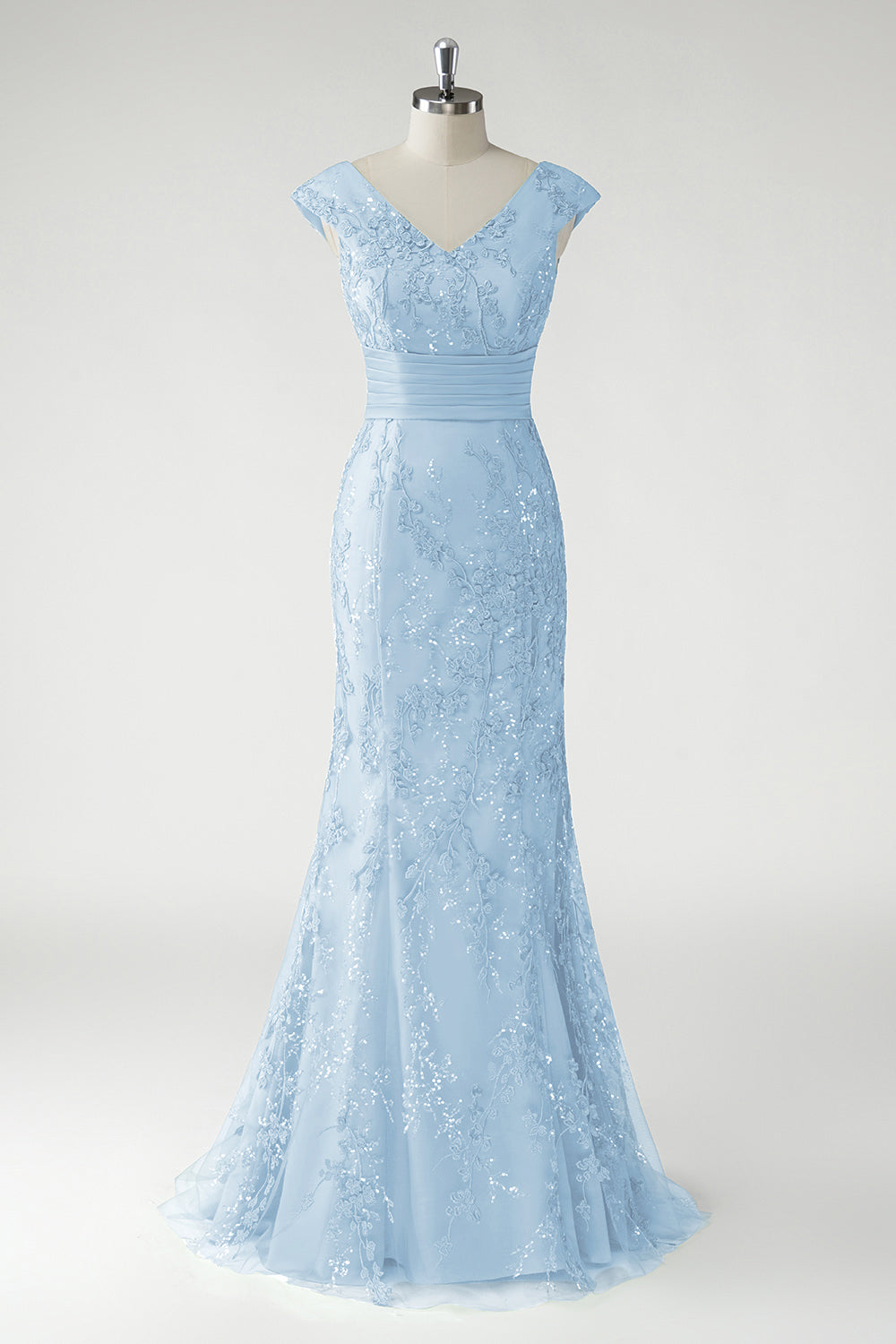 Sparkly Green V-Neck Mermaid Sequins Appliqued Cap Sleeves Long Formal Dress