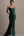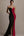 A Line Halter Black Satin Midi Formal Dress with Slit