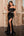 Black Floral A-Line V Neck Long Prom Dress with Belt