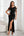 Black Bodycon V Neck Polka Dot Ruched Formal Dress with Puff Sleeves