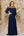 Navy Pleated A Line Boat Neck Long Formal Dress