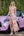 Pink Printed Floral V-Neck A Line Long Formal Dress