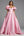 Pink Ruched V Neck A Line Long Formal Dress With Slit