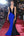 Blue Pleated Deeep V-Neck Gala Dress with Long Sleeves