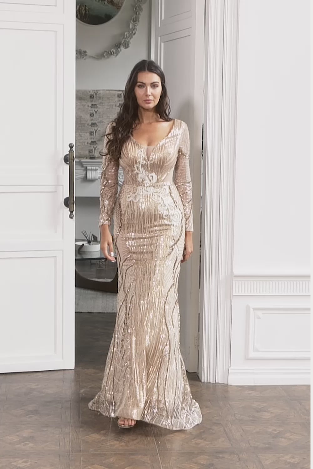 Mermaid Golden Mother of the Bride Dress with Long Sleeves