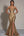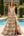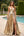Golden Metallic Ruffled A Line Long Formal Dress with Slit