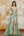 Green A-Line Spaghetti Straps Printed Pleated Long Formal Dress With Slit