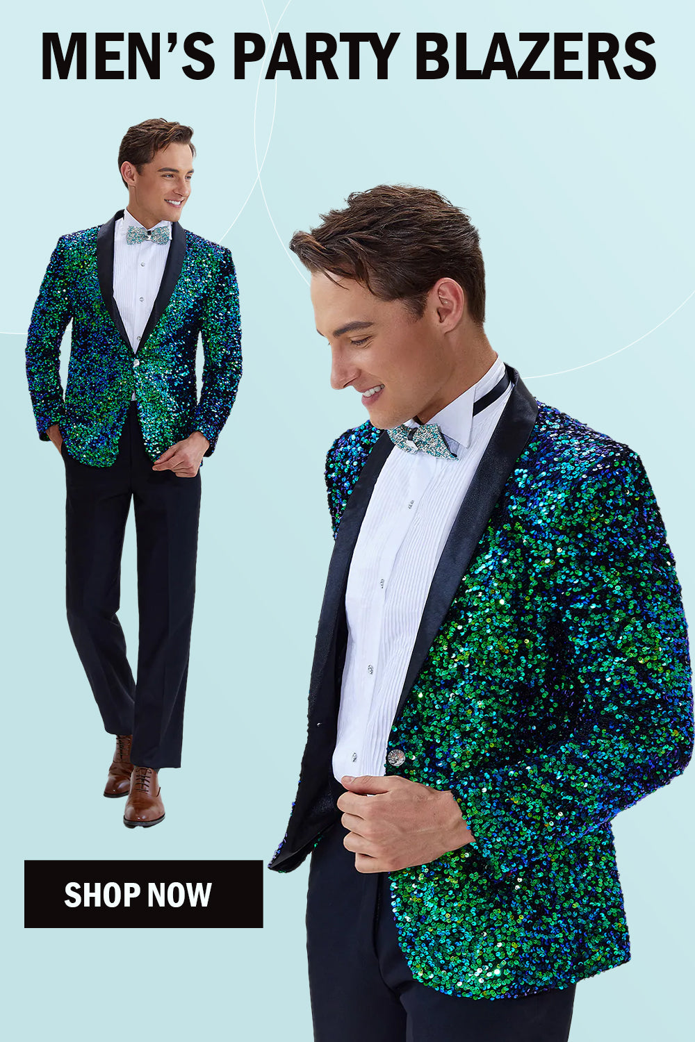 Gold Green Men's 2 Piece Notched Lapel Sequins Suits