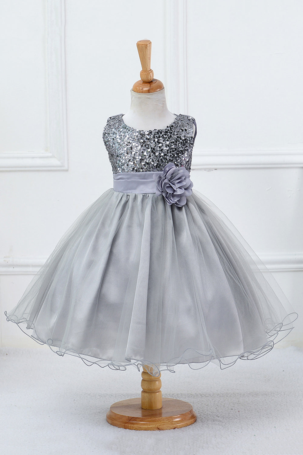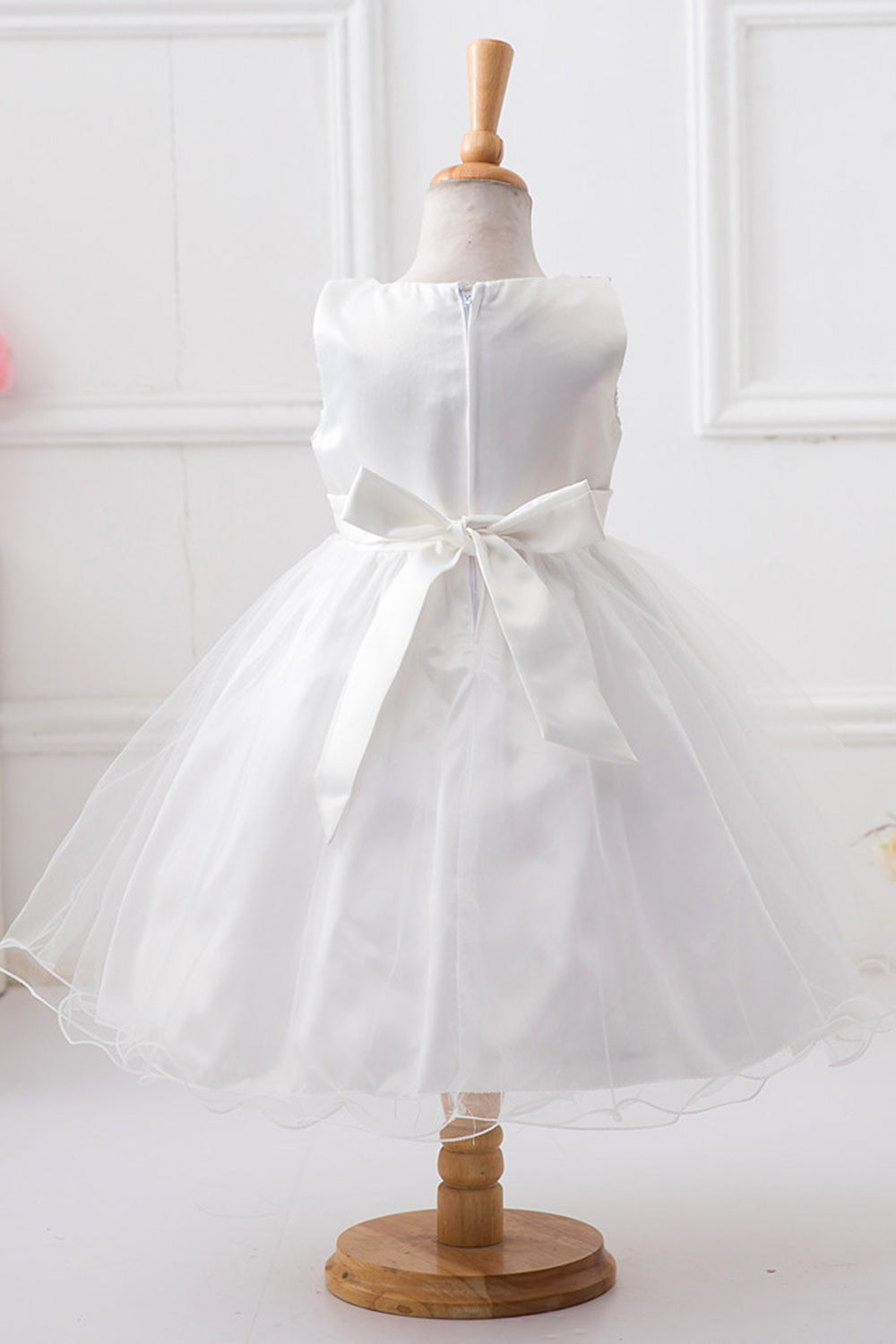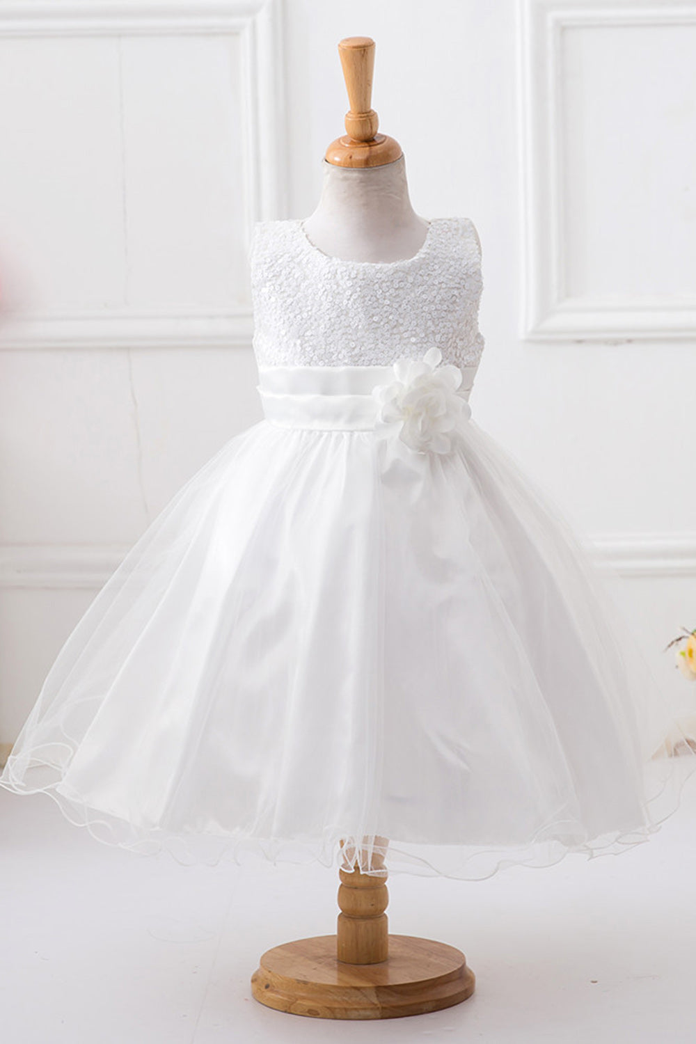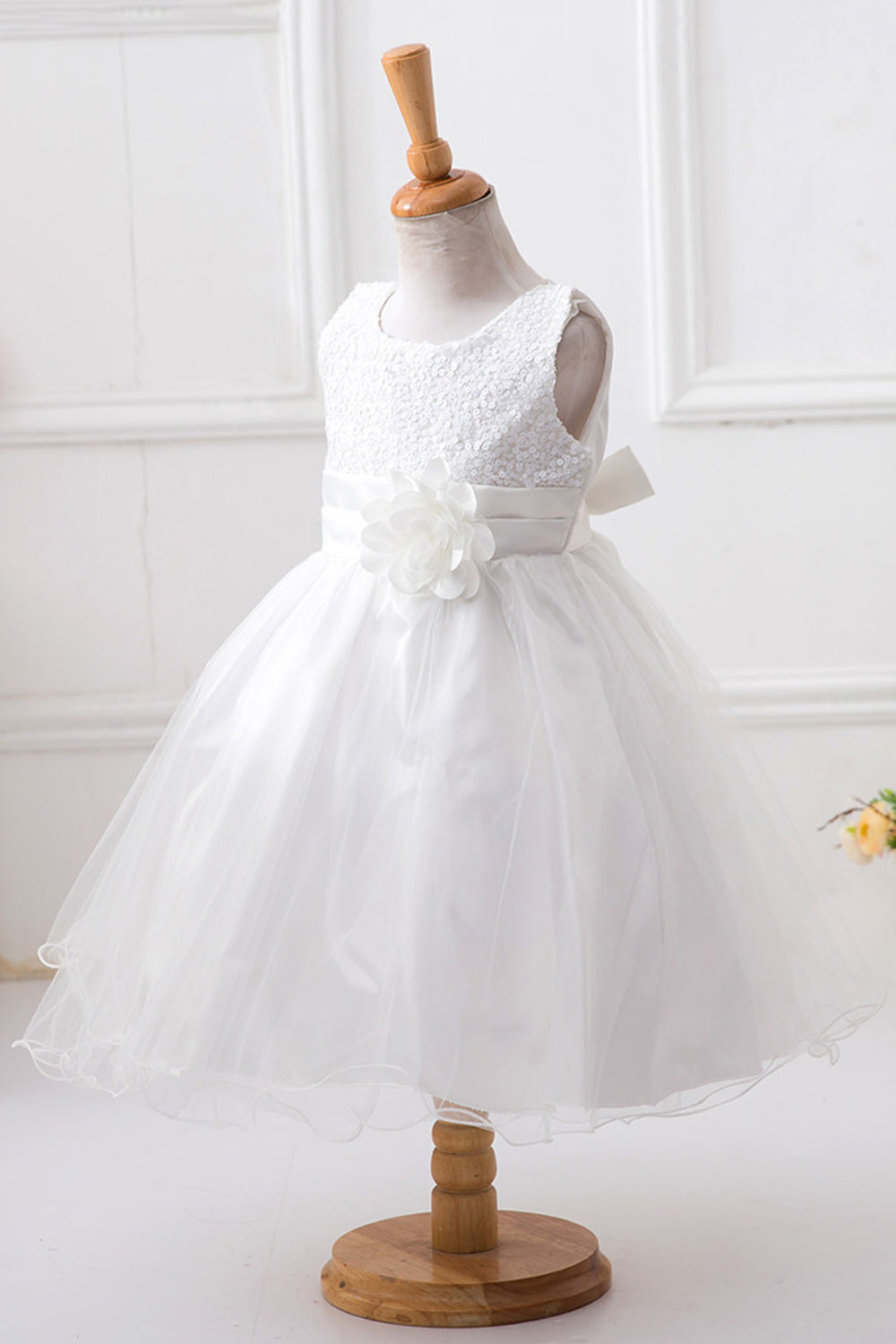 Sequins Sleeveless White Girls Dresses with Bowknot