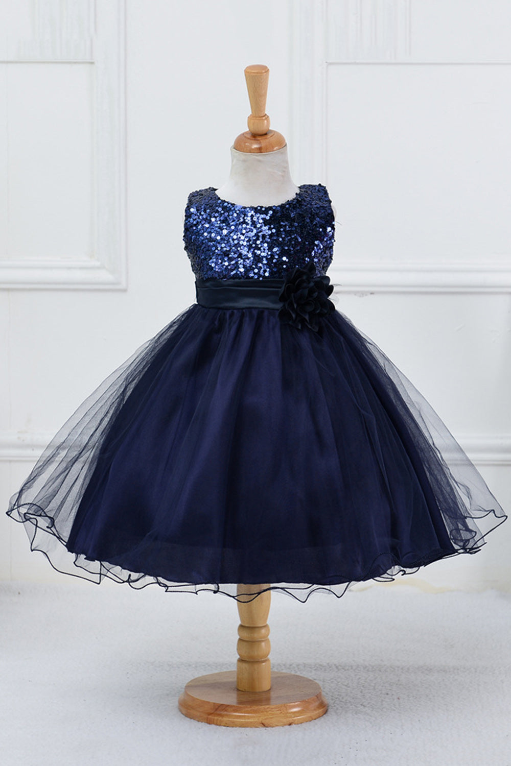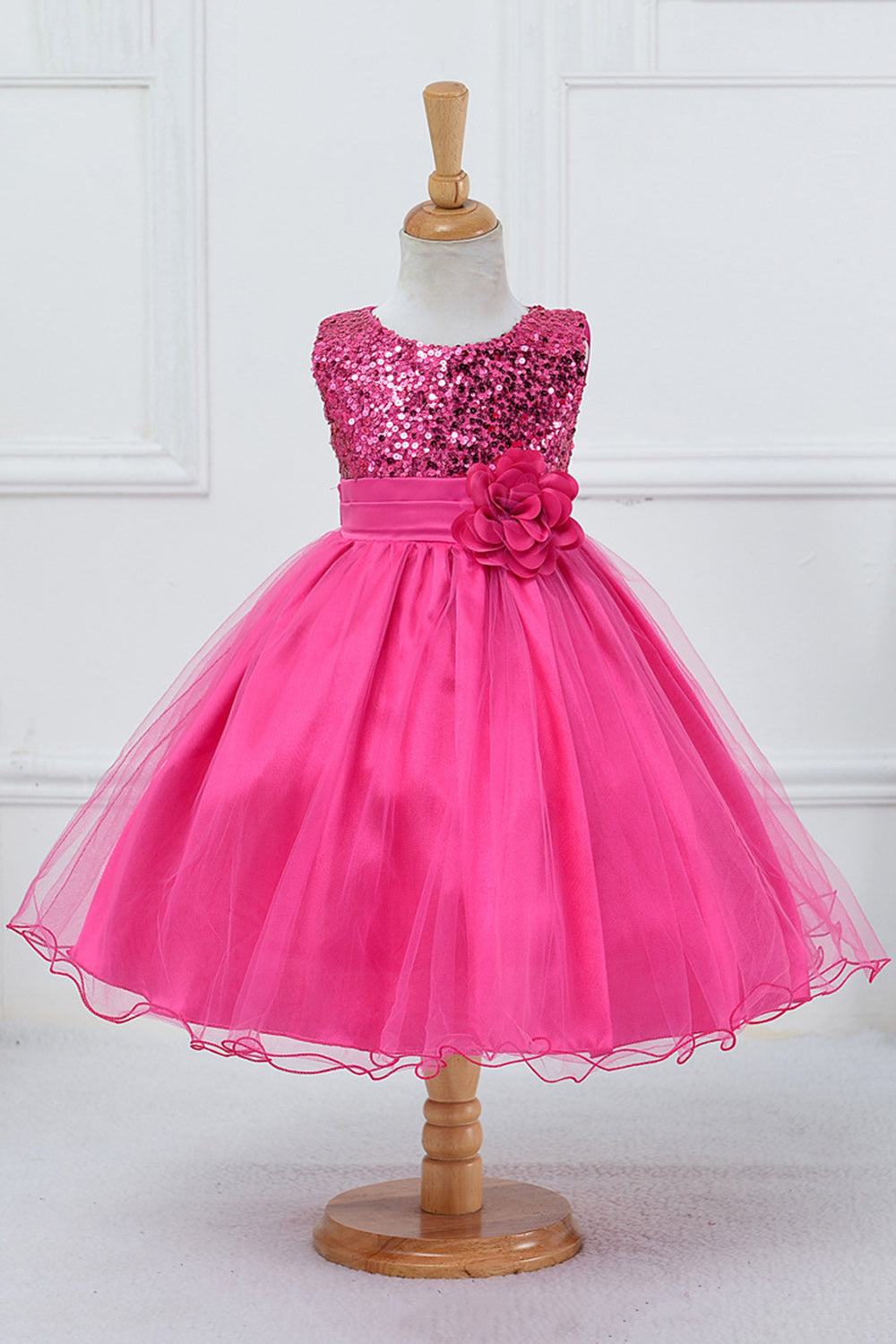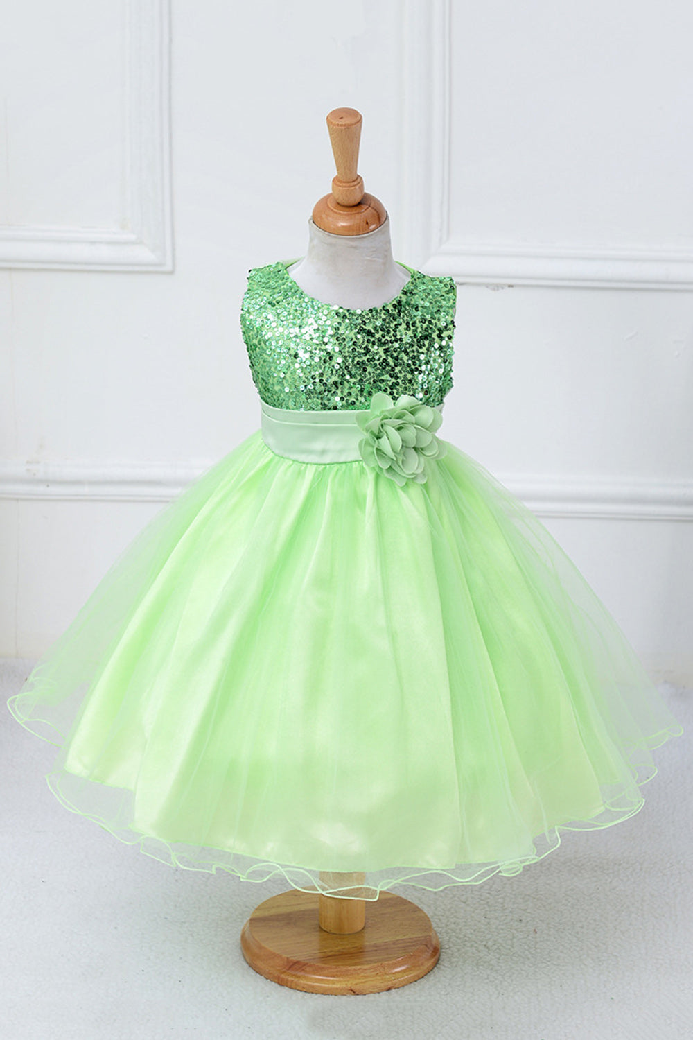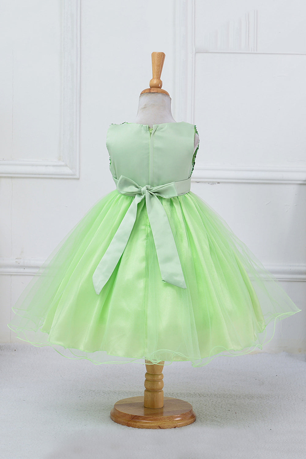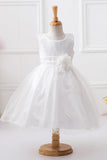 Sequins Sleeveless White Girls Dresses with Bowknot