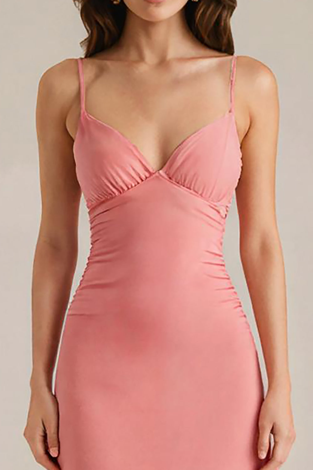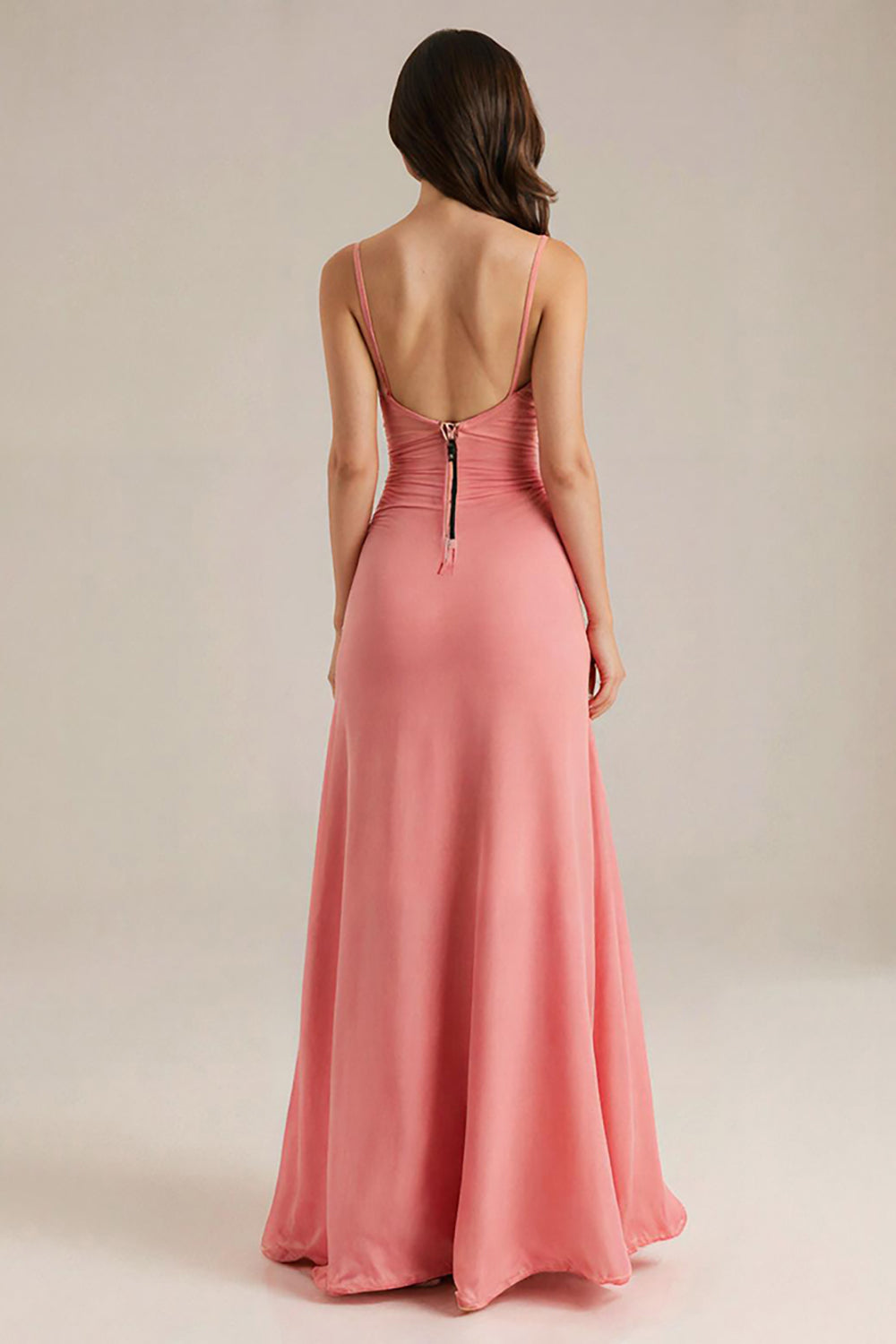 Peach V Neck A Line Long Evening Dress