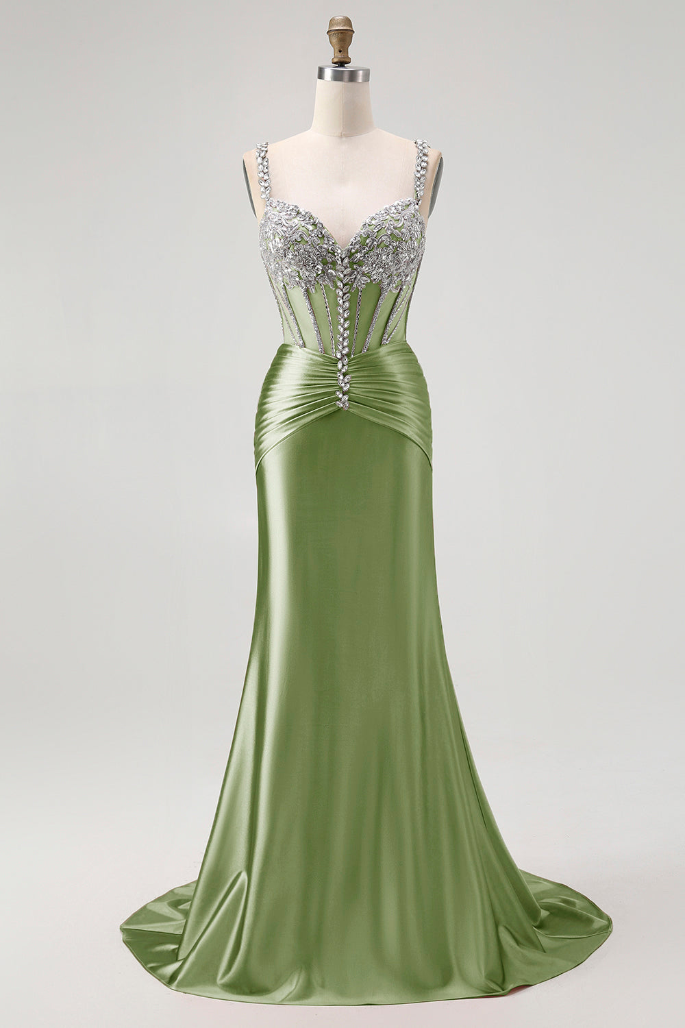 Sparkly Mermaid Blush Spaghetti Straps Corset Long Formal Dress with Sequins