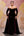 Black A-Line Flatter Sleeves Ruffled Tulle Plus Size Midi Formal Dress