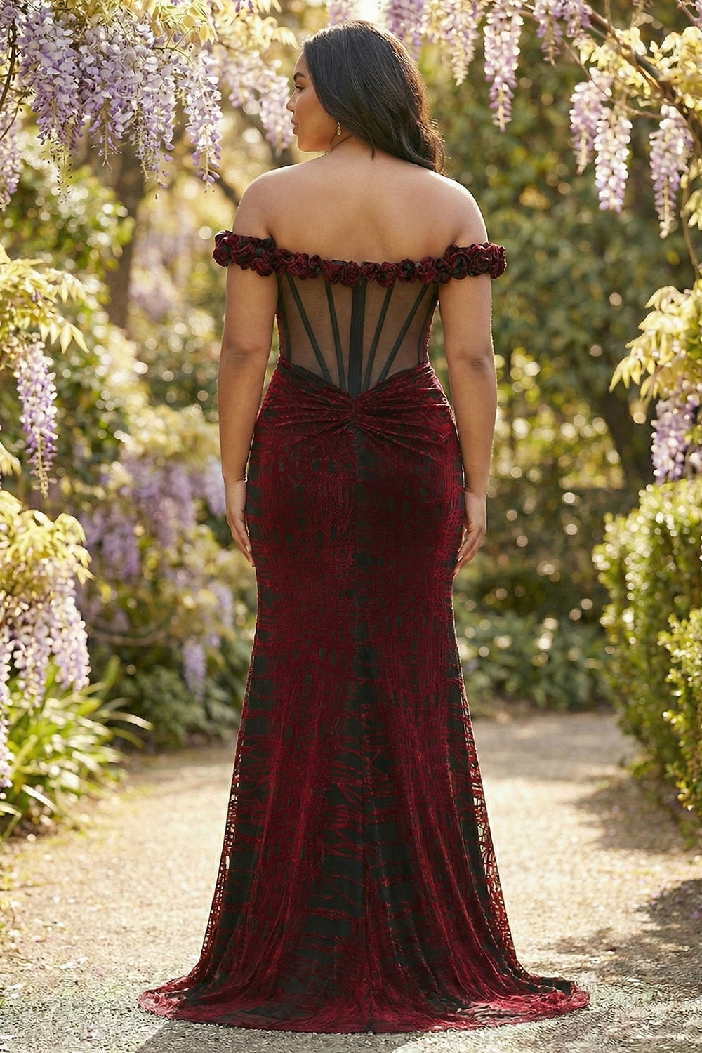 Off the Shoulder Black Red Mermaid Corset Plus Size Long Prom Dress with Slit