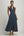 Navy and White Satin V-Neck A Line Maxi Polka Dot Dress with Puff Sleeves