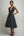 Black and White Satin V-Neck A Line Midi Polka Dot Dress