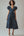 Navy and White Satin A Line Boho Maxi Polka Dot Dress with Puff Sleeves