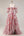 Pink Floral Strapless A Line Tiered Ruffled Beaded Long Corset Formal Dress