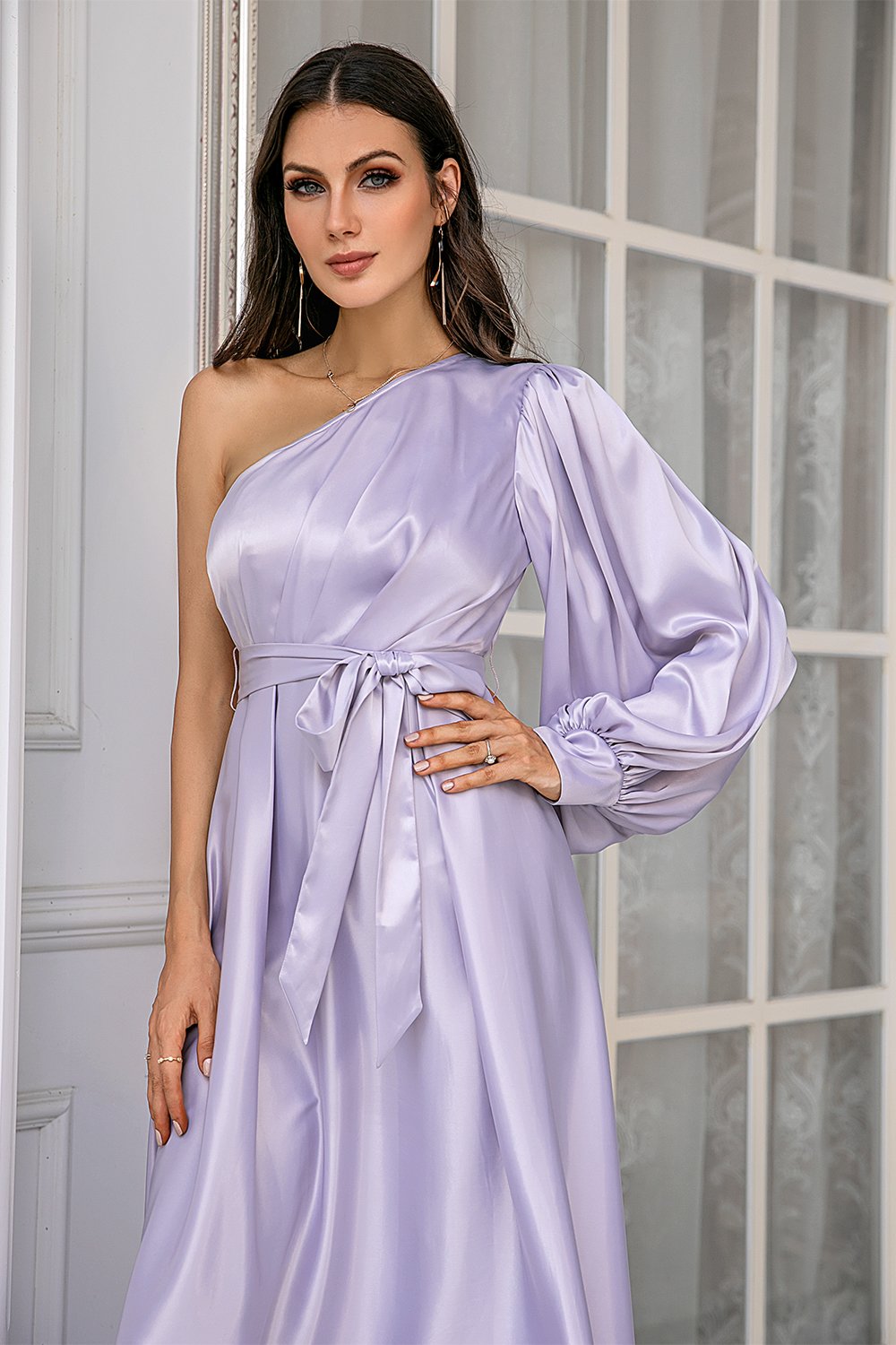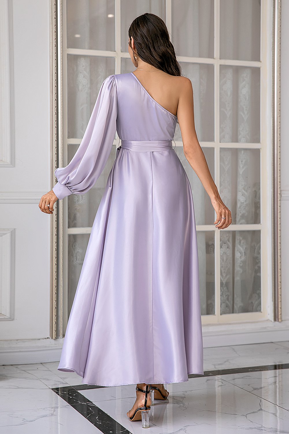 Lavender One Shoulder Simple Formal Dress