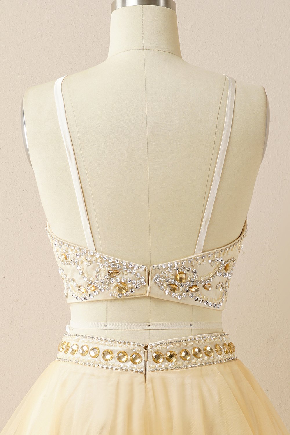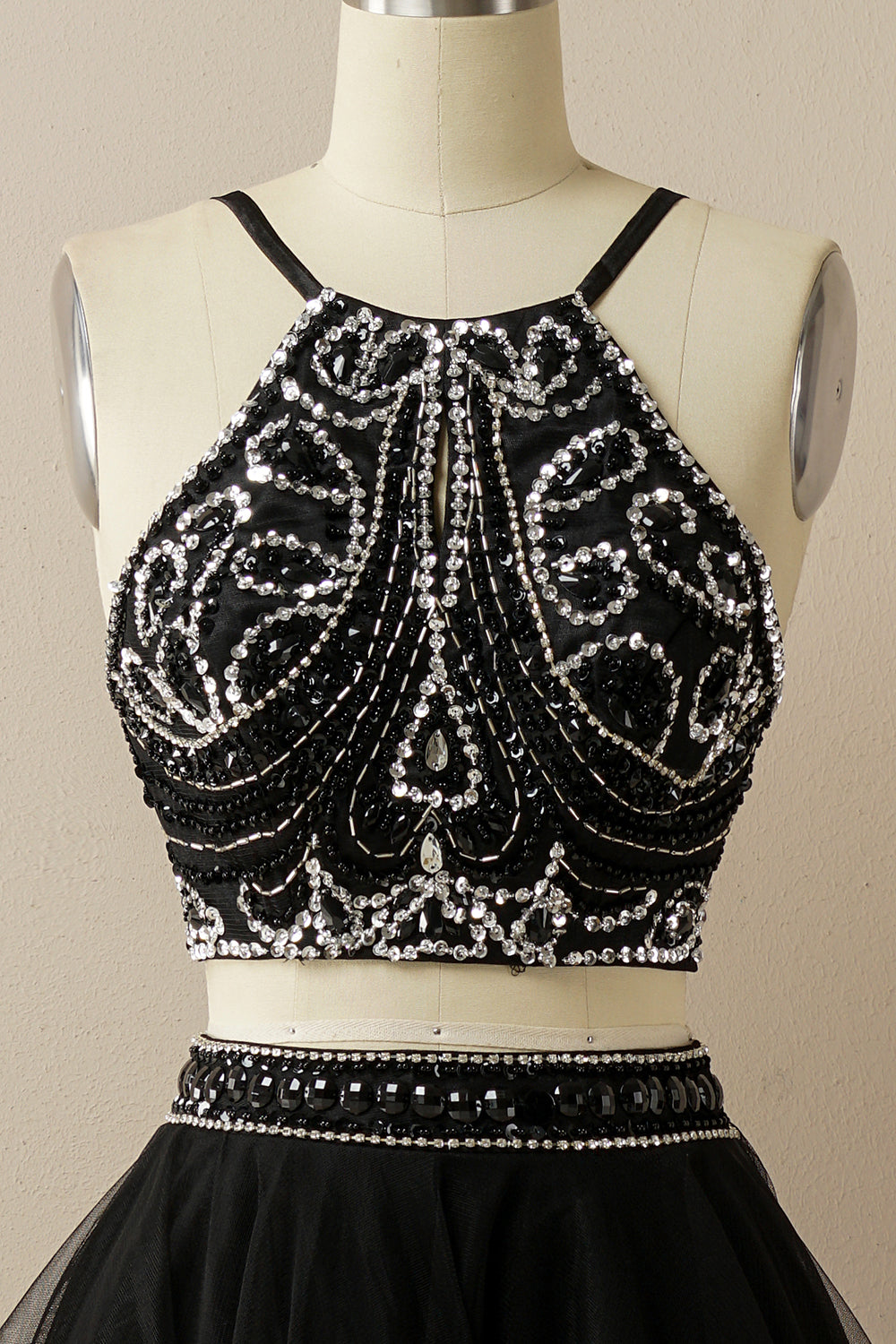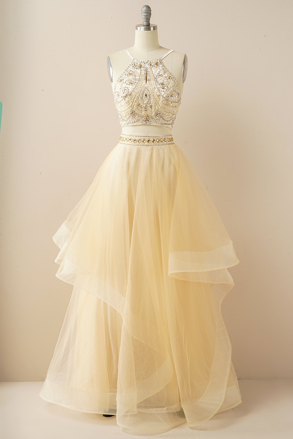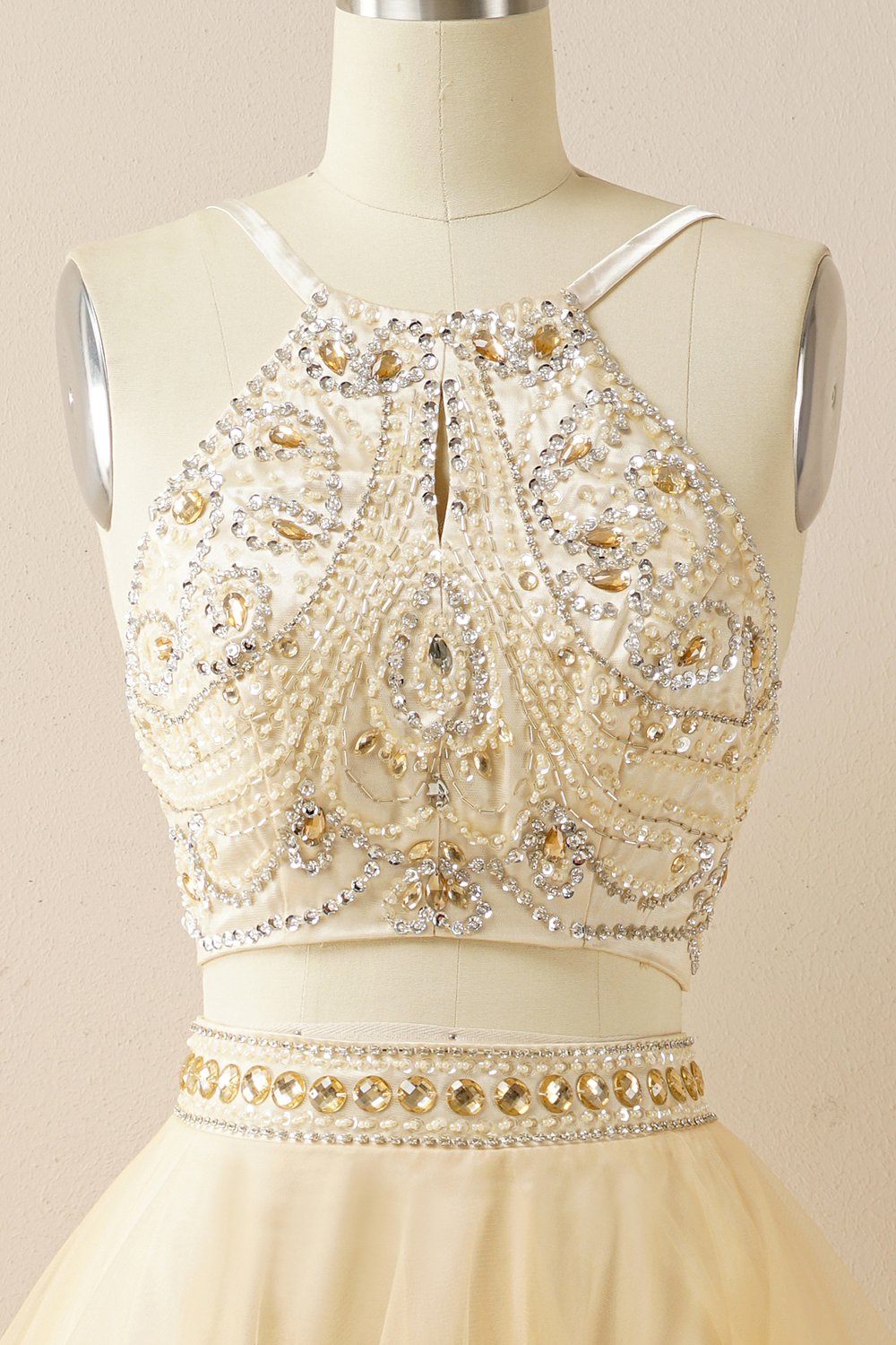 Two Pieces Halter Beaded Prom Dress