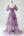 Removable Sleeves Purple Print Tiered Formal Dress with Accessory