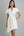 Ivory Satin Bodycon Round Neck Ruched Midi Work Dress