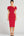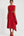 Red Satin Sheath Asymmetrical Work Dress with Belt