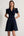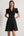 Ivory and Black Satin V-Neck Flare Sleeve Long Work Dress