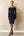 Navy A Line Peak Lapel Short Sleeves Midi Work Dress