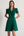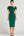 Green A Line Cap Sleeve V-Neck Satin Long Work Dress