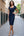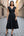 A Line Black Square Neck Satin Midi Work Dress with Ruffles