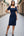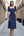 A Line Navy Ruched Round Neck Half Sleeves Long Work Dress