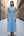Sky Blue Satin Ruched A Line Round Neck Long Work Dress
