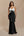Black Satin Bodycon Round Neck Ruched Midi Work Dress