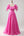 Puff Sleeves Hot Pink Formal Dress with Ruffles