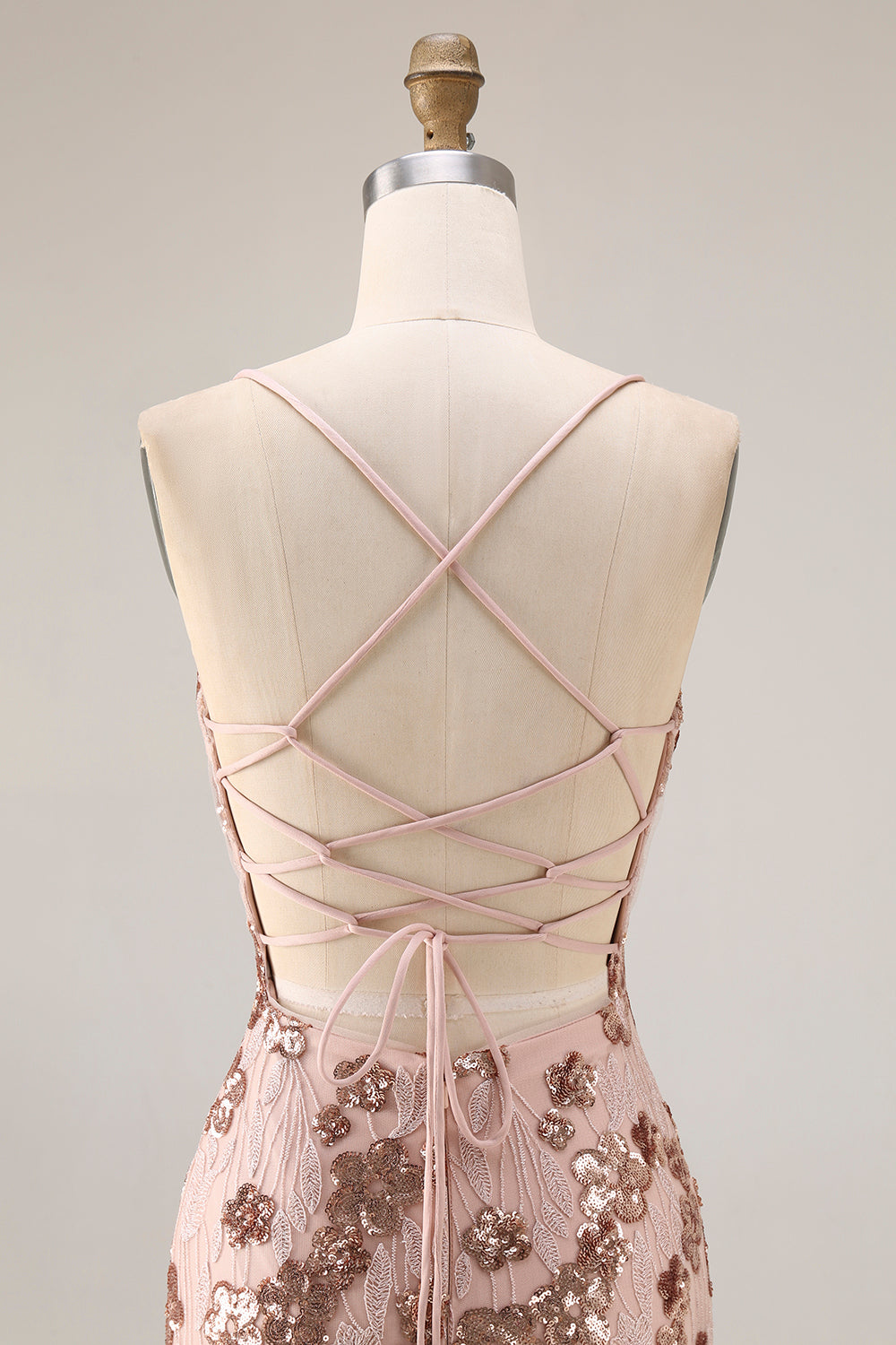 Sparkly Burgundy Floral Mermaid Appliqued Sequins Long Formal Dress