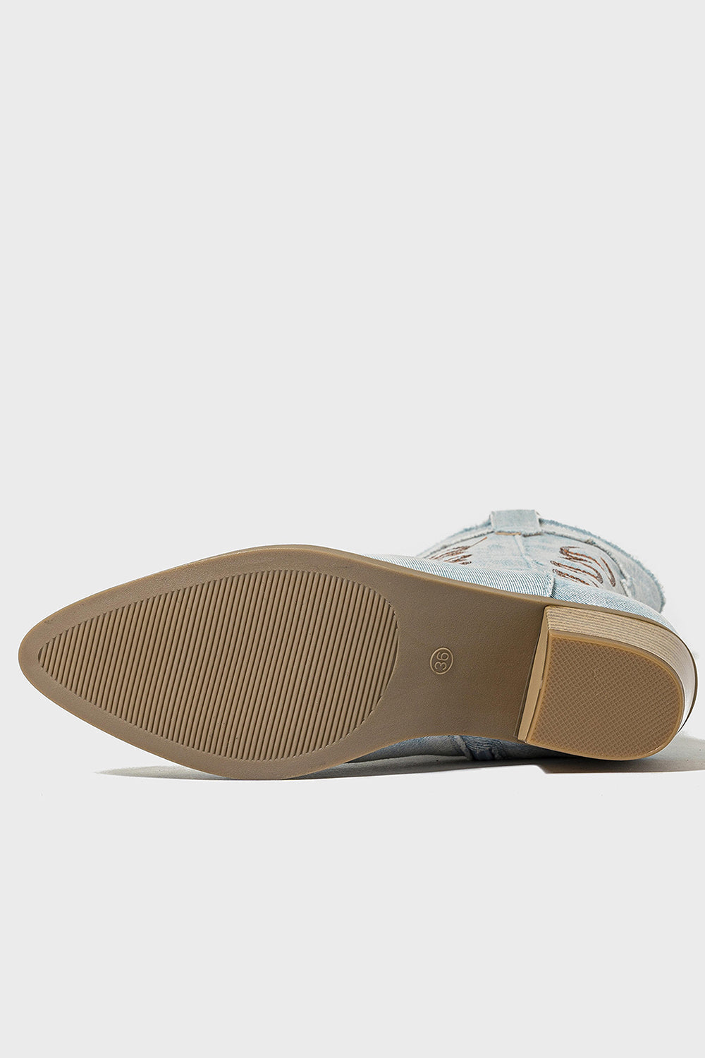 Dark Blue Pointed Toe Mid Calf Chunky Heel Embroidered Cowgirl Boots