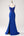 Blue Mermaid V-Neck Satin Long Appliques Sequin Formal Dress With Slit
