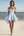 White and Blue Floral A Line Short Summer Dress with Ruffles Sleeves