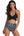 Black One Piece Printed Butterflies Swimwear with Beach Skirt