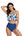 Summer Beach Blue V Neck Print Vest Style Tankini Swimsuit