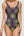 Tropical Print Cut Out Drawstring Side One Piece Swimsuit