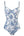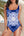 Blue Spaghetti Straps One Piece Print Floral High Waist Swimsuit