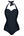 Navy Halter Mesh Cut out Backless One-Piece Swimsuit
