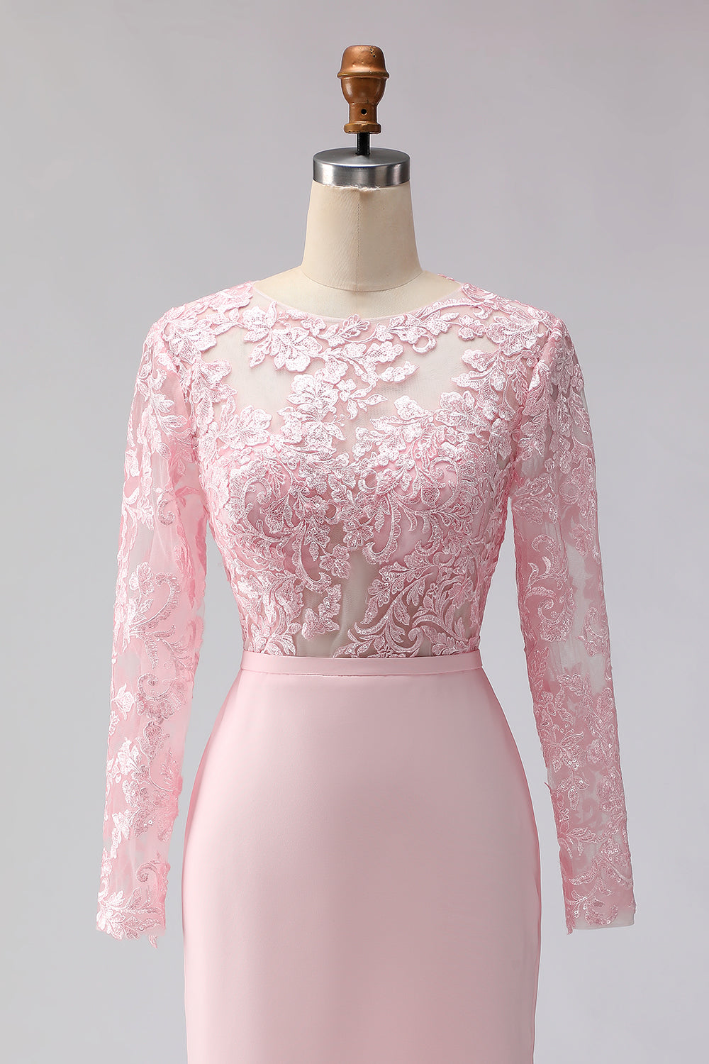 Blush Pink Appliqued Sheath Boat Neck Midi Mother of the Bride Dress with Sleeves