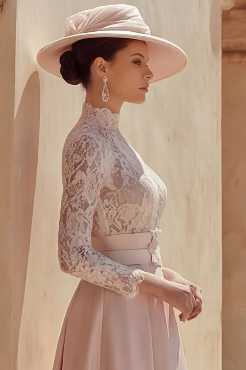 Candy Pink A Line High Neck Long Mother of the Bride Dress with Lace